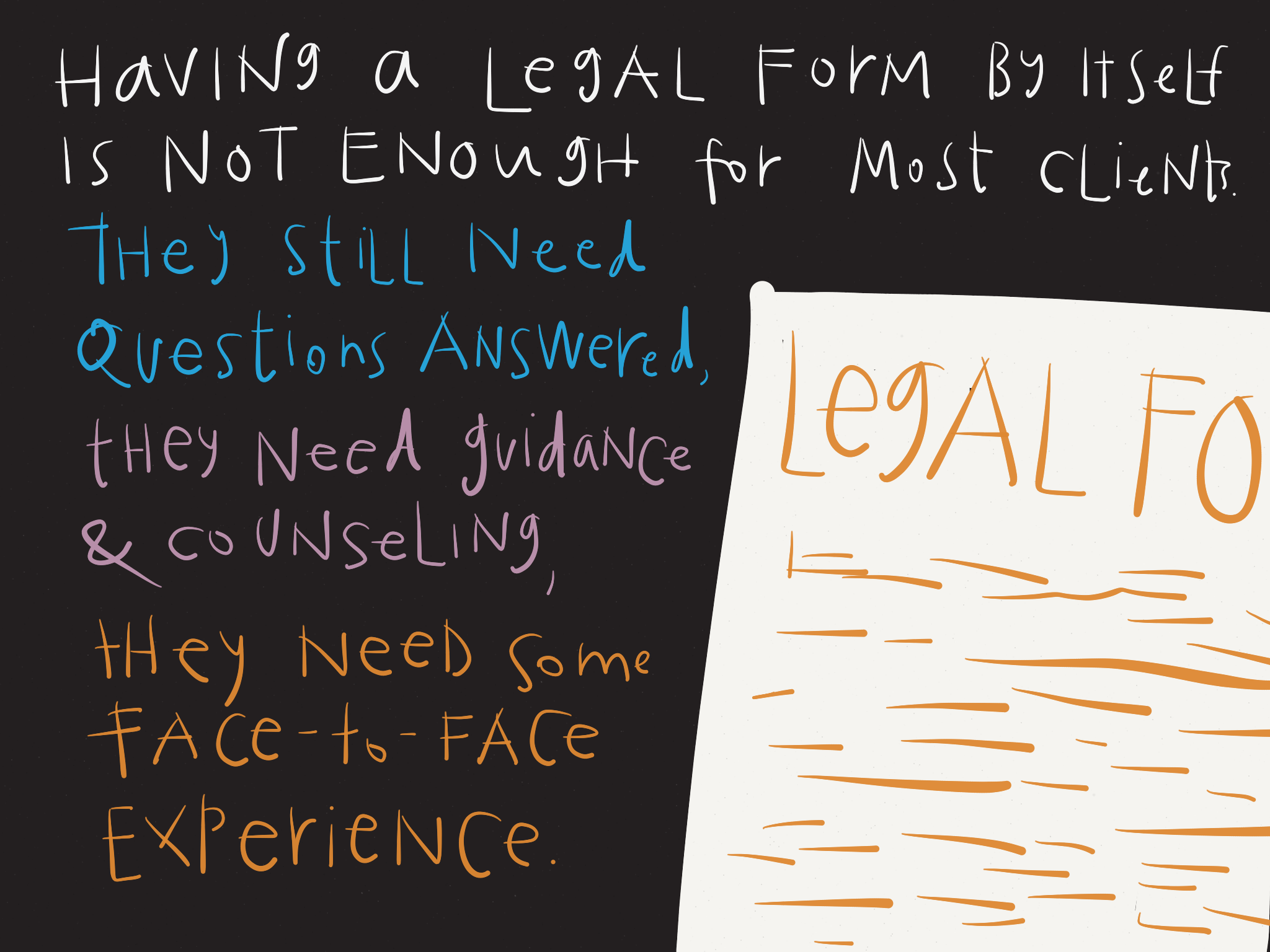 Realizing that legal services should serve all types of people,the question becomes how to create a new thing that works for these many different user types?