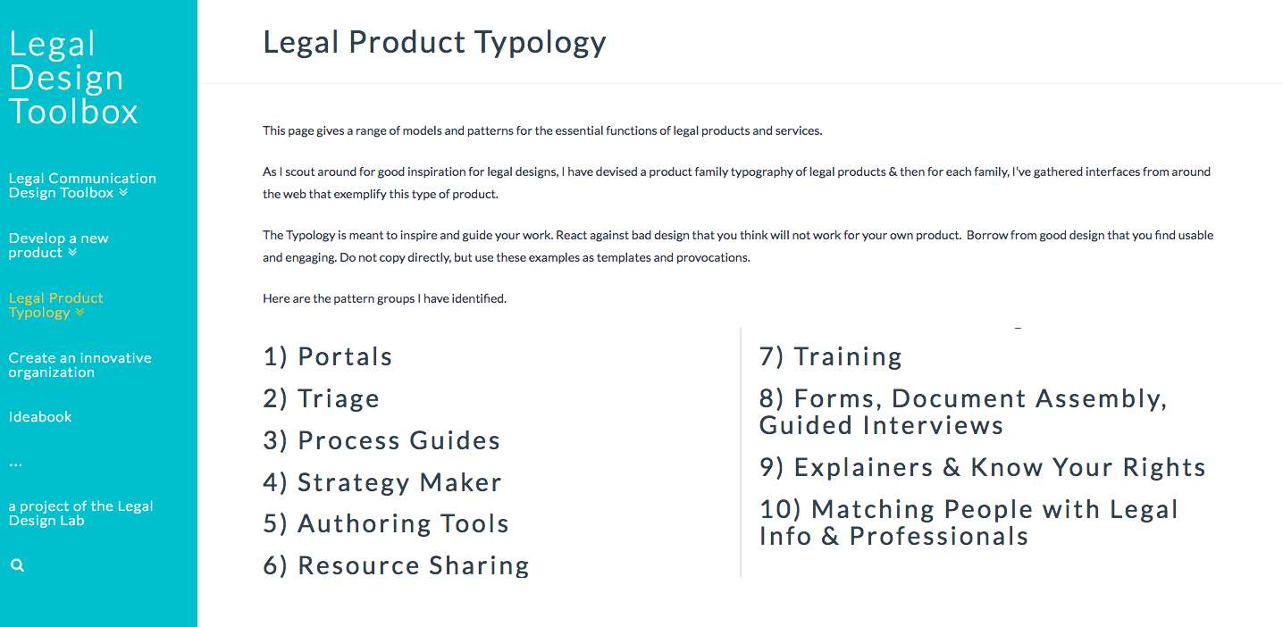 • Next-Generation Legal Design Typology, that lay out the kinds of products and services our testing indicates that users need.