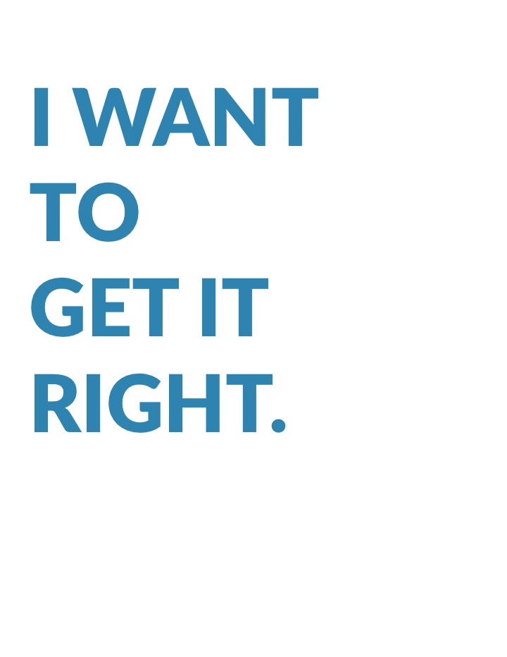 I want to get it rightThe fear is that if you slip up, go off track, or make a small mistake, all of your effort will be for naught. You will be in dangerous territory of penalties, lost chances, and bad outcomes.