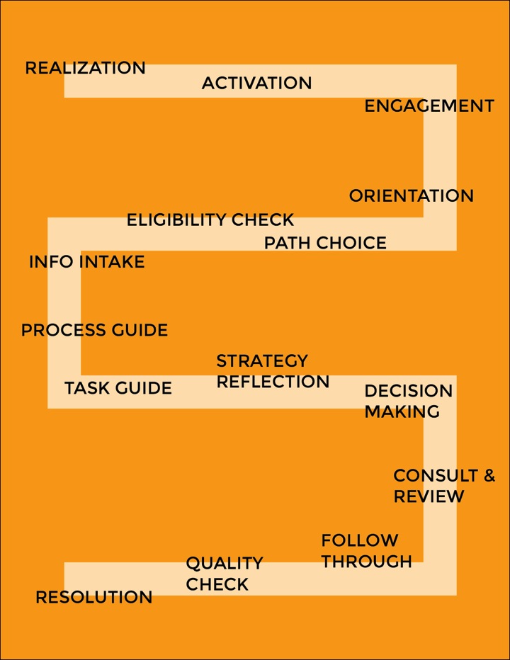 When we think of the legal system through the lens of the model Legal User Journey — mapping out the steps from beginning to end that an archetypal person would take to move through an archetypal legal process.