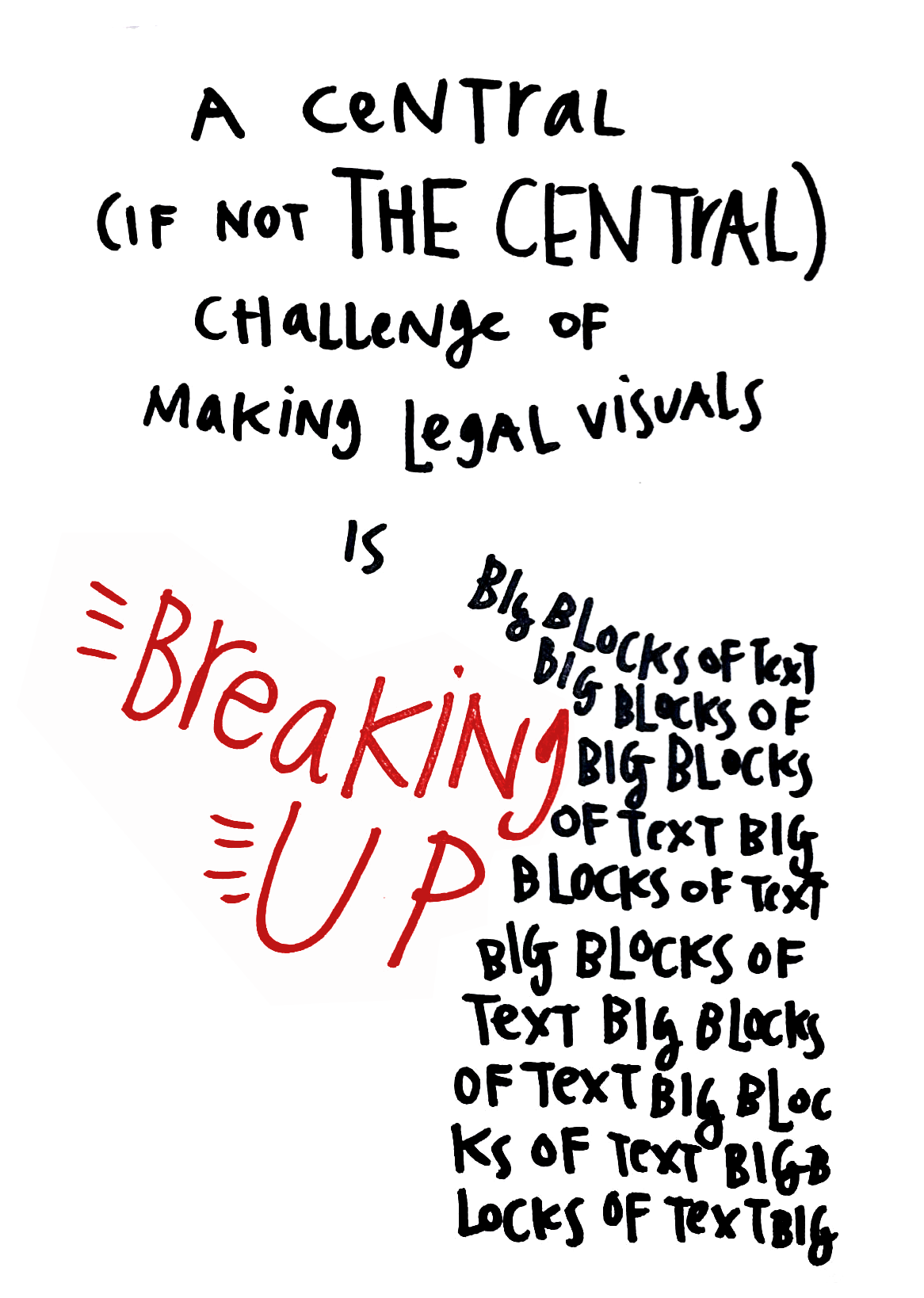In the legal world, we often use design to communicate complex information. We can see two main types of complex communication design: that to help our user understand complex info better, and that to help our user make better decisions for herself.